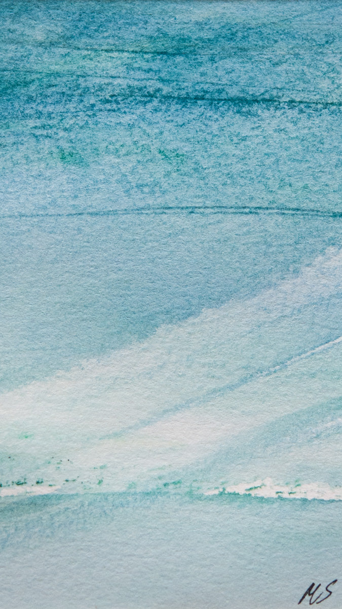 - 4"x2.5" painting in a 4" x 6" white mount, ready to frame.