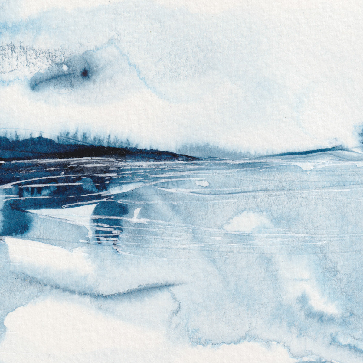 - 4"x4" painting in a 8" x 8" white mount, ready to frame.
