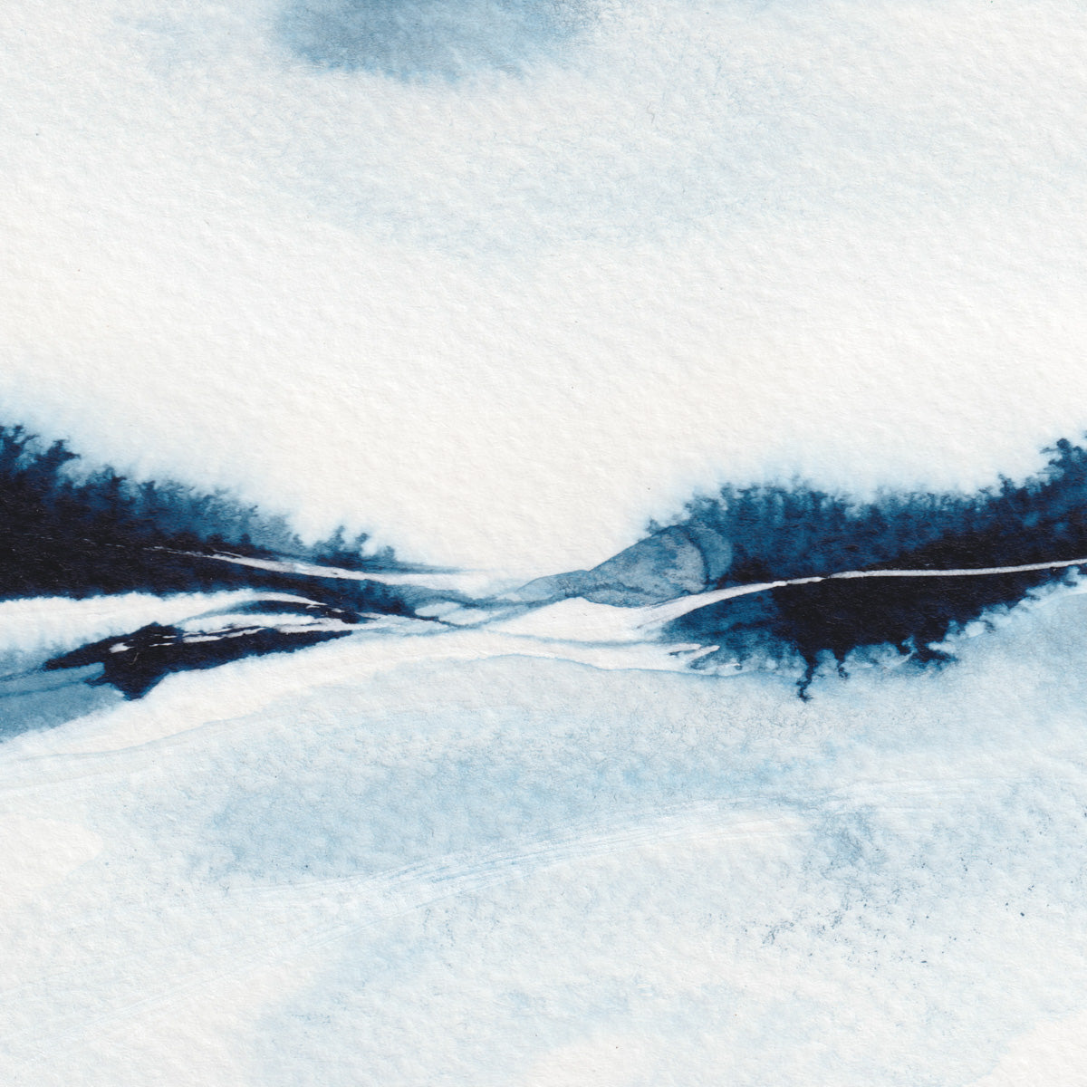 - 4"x4" painting in a 8" x 8" white mount, ready to frame.