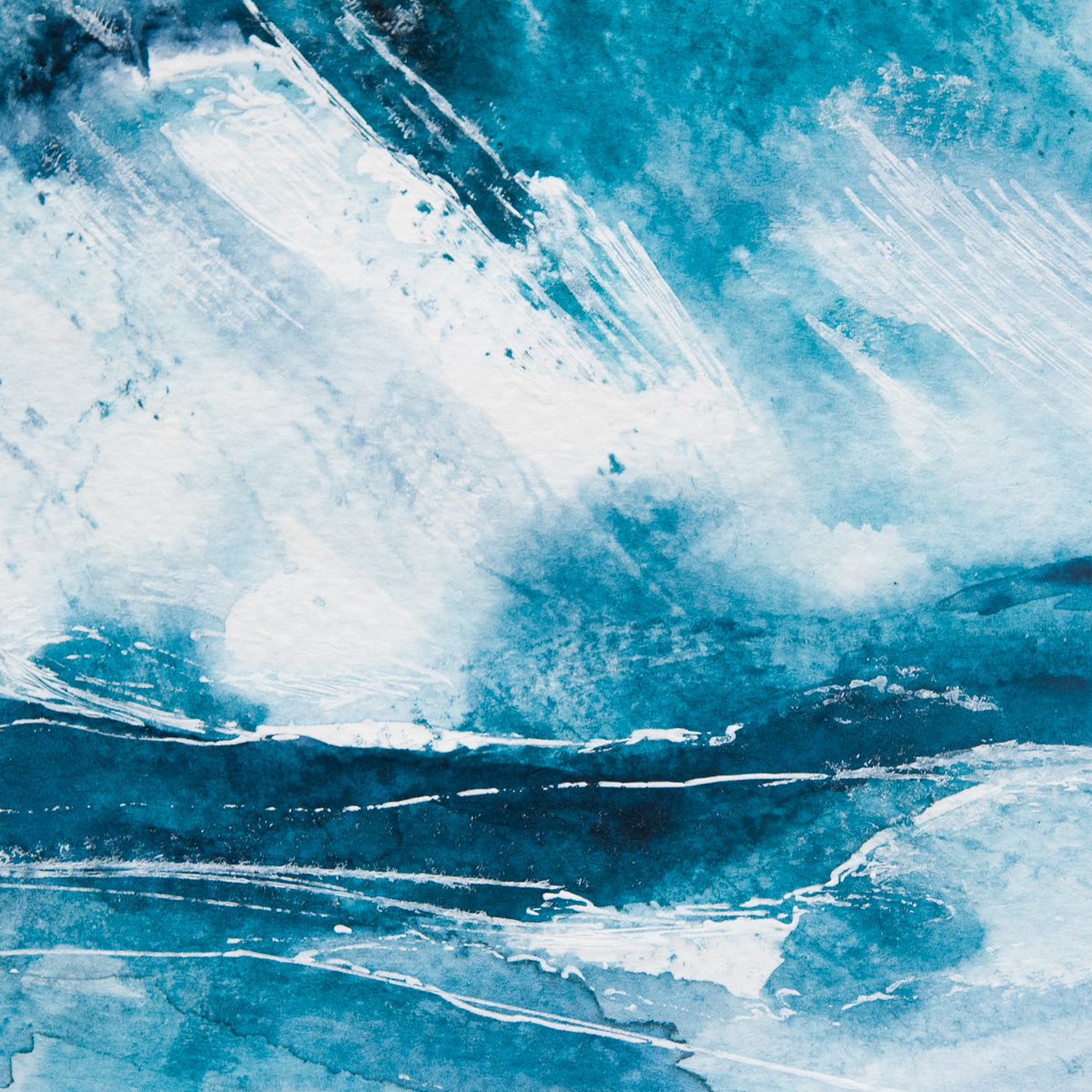 - 4"x4" painting in a 8" x 8" white mount, ready to frame.
