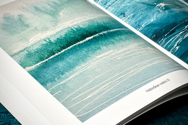 Inks, acrylics, and pen on paper to express my love of the colors and feel of the Hebridean Seas that surround me. Each painting represents how it feels to be by the sea - the joy and solace. Intuitive and free expressions of the Sea.