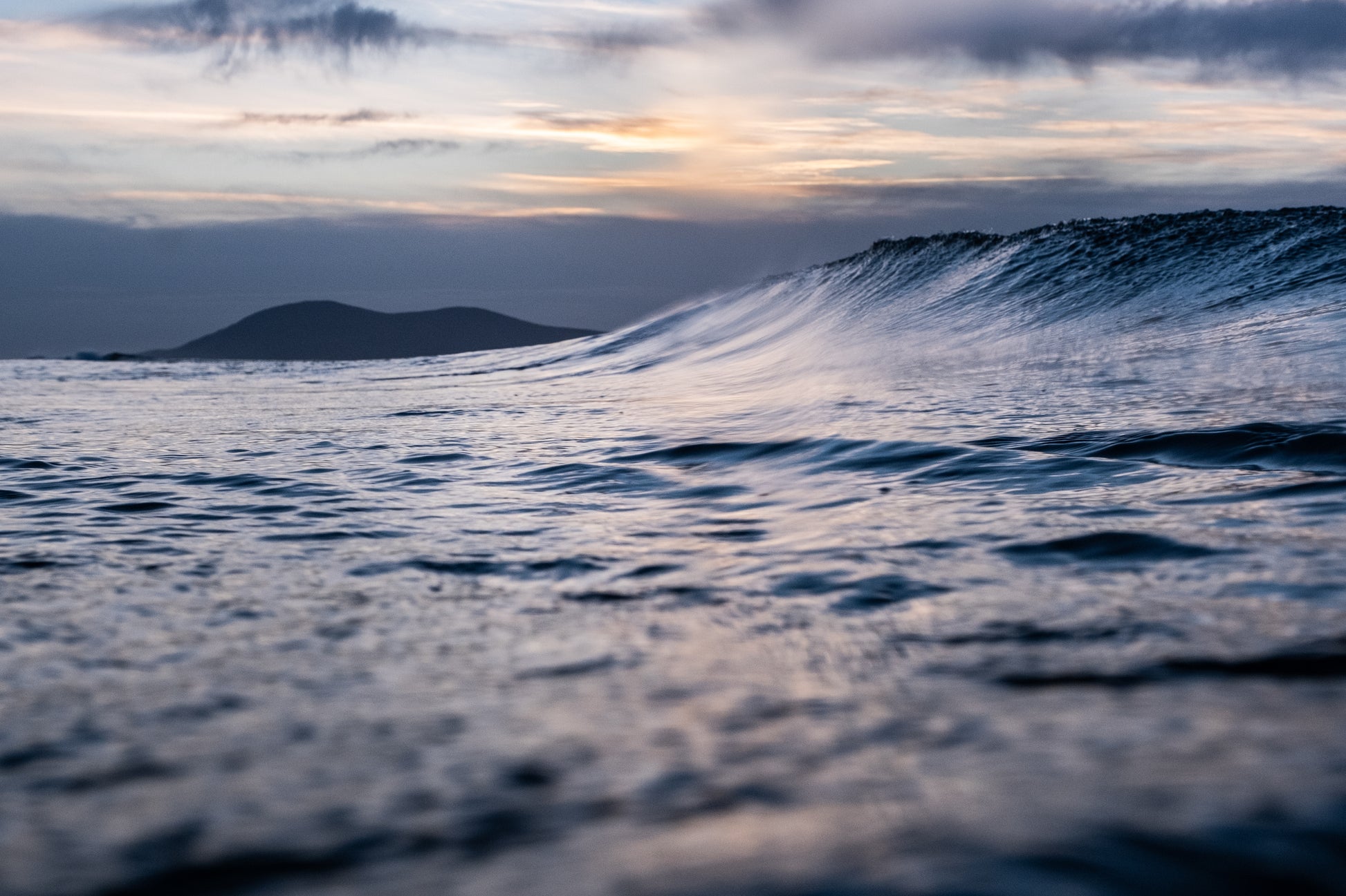 From Margaret's collection of photography. This image is taken from the water in the early morning at Luskentyre as the waves came in.