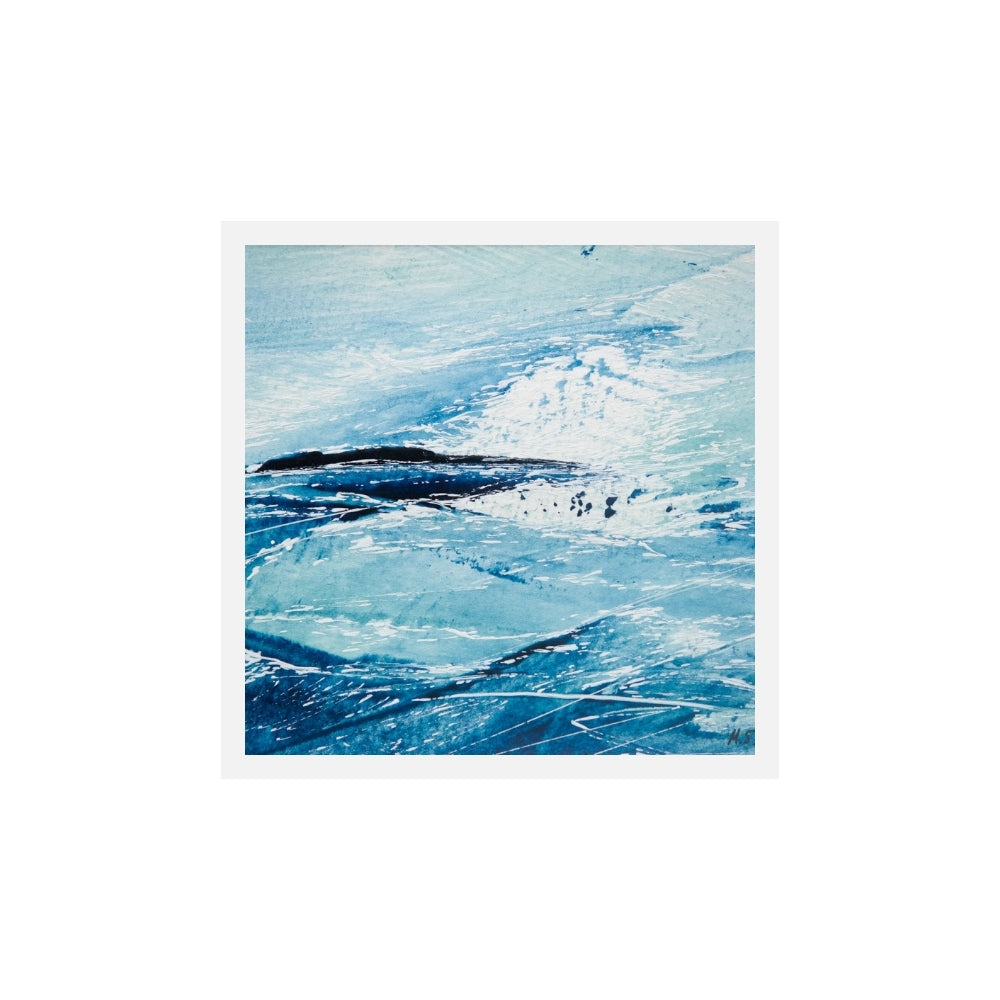 - 4"x4" painting in a 8" x 8" white mount, ready to frame.