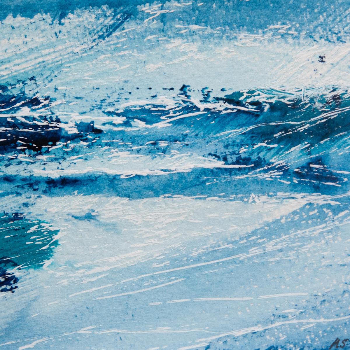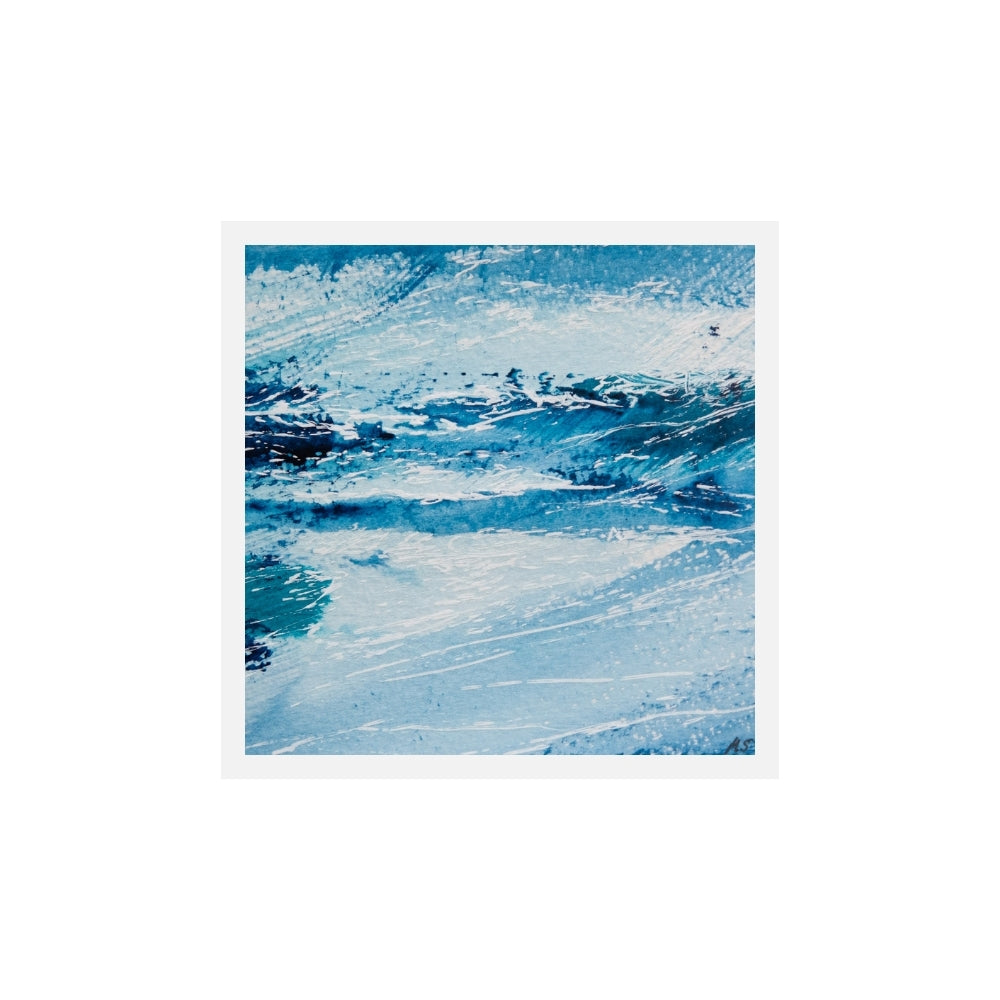 - 4"x4" painting in a 8" x 8" white mount, ready to frame.